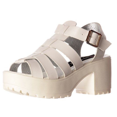 SHU CRAZY offer Cut Out Gladiator Platform Summer Sandals - Chunky Cleated Sole Block Heel - Black, White, Pink, Silver, Gold UK5 - EU38 - US7 - AU6 White PU. This awesome product currently limited units, you can buy it now for , You save -